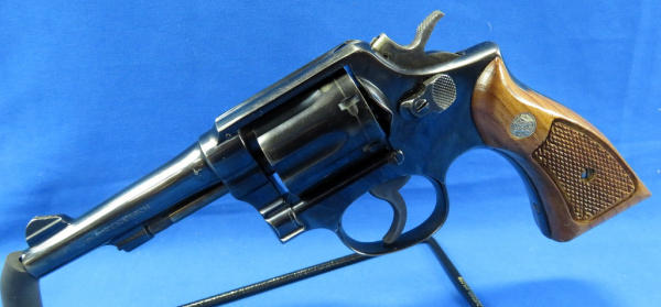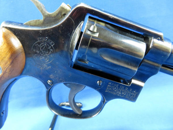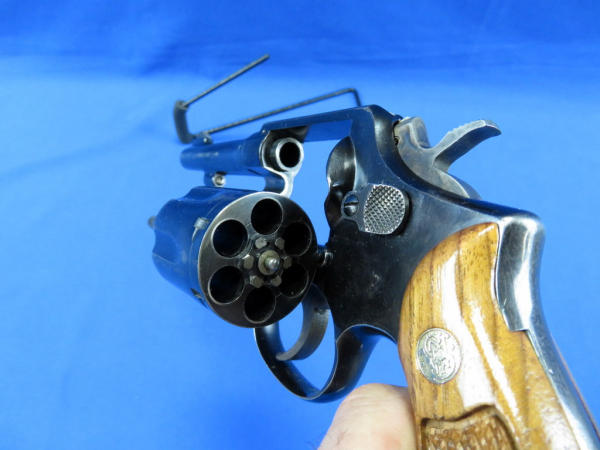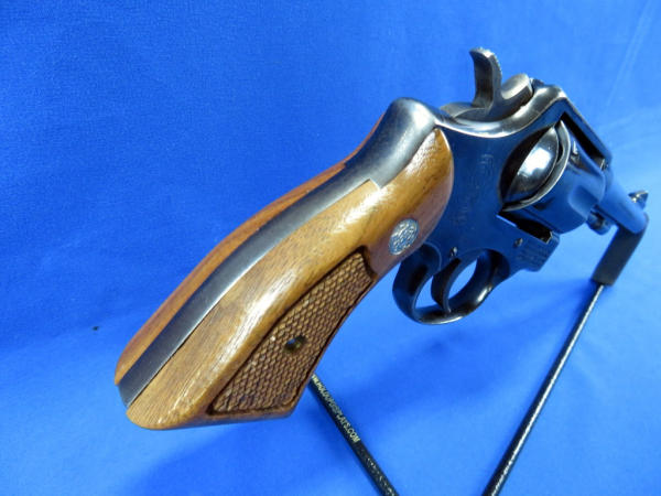 4" BBL; 6-shot swing out cylinder; wood factory checkered grips; has some bluing loss and a few scratches from use; made in USA; comes with a Glock hard case; SN#C882557