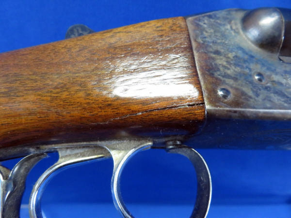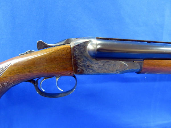 28" VR-BBLs; easy break action; case hardened receiver; wood is nice, has a 1" crack above trigger on right side; good bluing; 2.75" chamber; Left - FC & Right-MC; not your normal Fox engraving on bottom of receiver, has a Duck scene; two triggers; no SN#