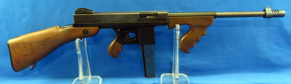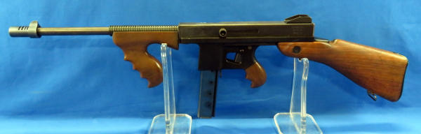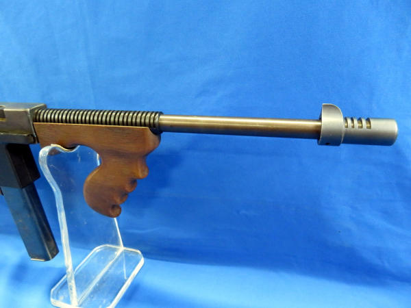 16" BBL; removable magazine; two pistol grips; wood furniture; has some bluing loss in a couple spots but I think mainly from storage, not sure if it's been shot; fun looking firearm; SN#34513