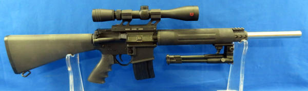 18" heavy stainless barrel; pistol grip; bi-pod; Redfield Revolution 4-12x40 scope; like new condition; removable magazine; SN#KT1031501