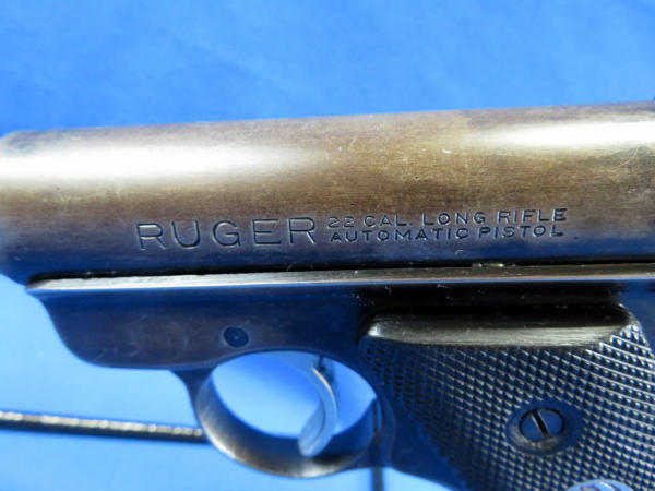 4.75" Tapered BBL; bluing very thin; gun has some wear; one magazine; comes with a hard case; hard rubber checkered grips; fixed sights; made in USA; SN#18211