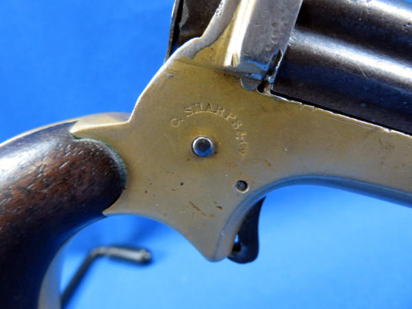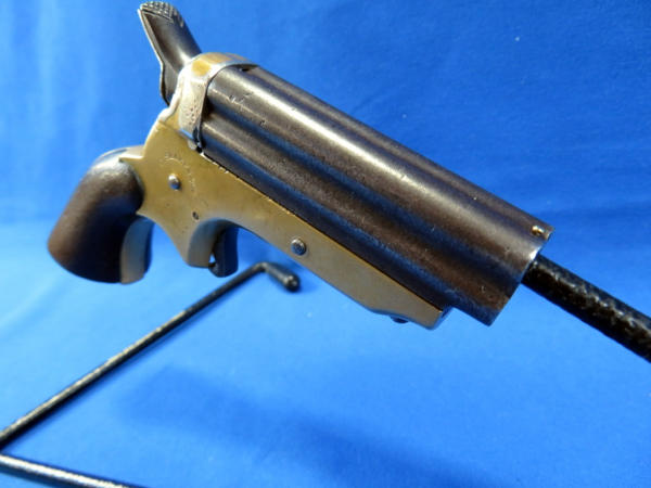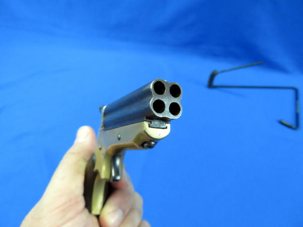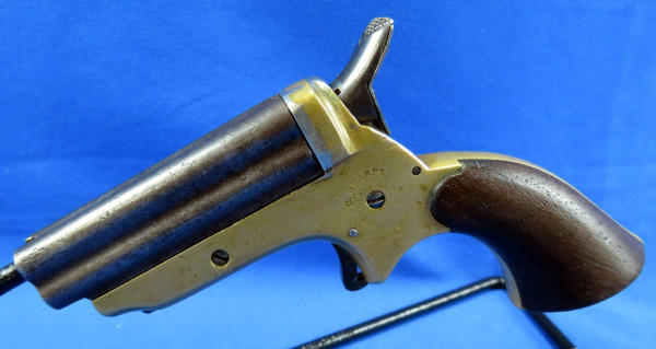 2.5" BBLs; brass frame; wood grips; spur trigger; barrels slide forward easily; has some finish wear but a nice example of an early firearm; SN#16440