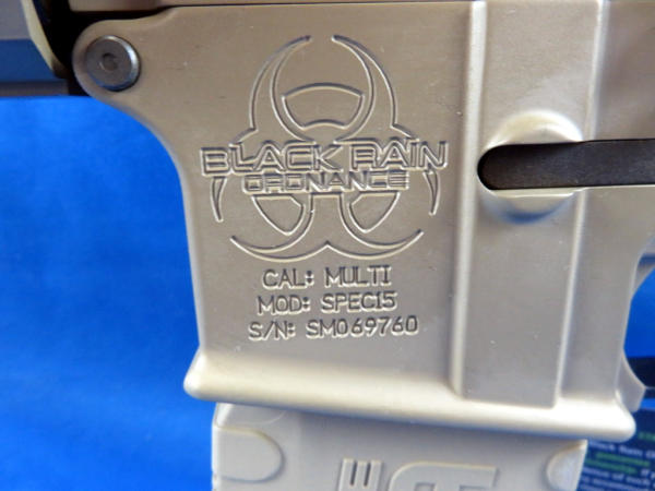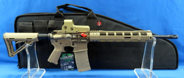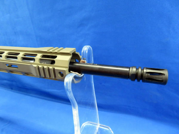 originally cataloged as .5.56, but is a .223 Wylde; mint & unfired; desert brown color frame; 16" BBL w/2" flash hider; extendable stock; pistol grip; one magazine; has factory padded case; Military/Police site; SN#SM069760