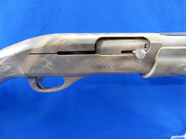 23" VR-BBL, has been cut; mag release is very gummed up, needs a cleaning and oil; been painted Camo; marked Special Purpose on right side of receiver; 2.75" & 3" chamber; CC; SN#PC594381