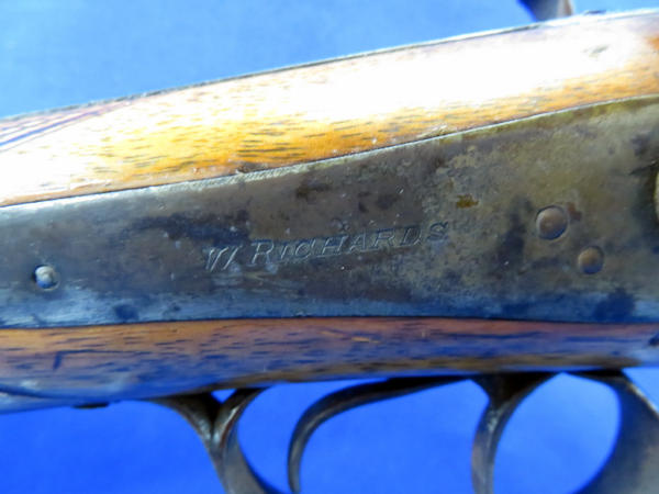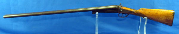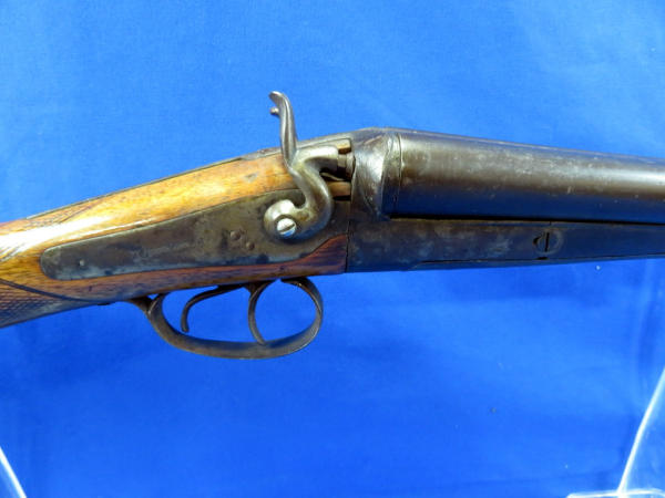 30" BBLs; loose break action, lever release on forearm is lose and wants to open easily; two triggers; both mechs work; wood is solid; both CC: no SN#