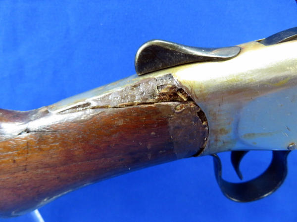 30" BBL; easy break action; homemade trigger guard; damage to stock; aftermarket finish on receiver; CC; no SN#
