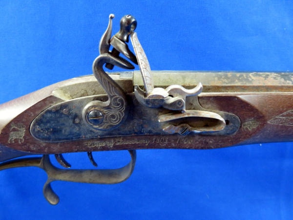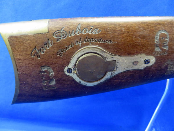 28" Oct. BBL; heavy rust and water staining on wood; engraved to commemorate the Lewis & Clark Voyage; not many were made, has some issues but should be able to clean up some; No. 119 mech works but needs cleaning; No FFL Transfer needed