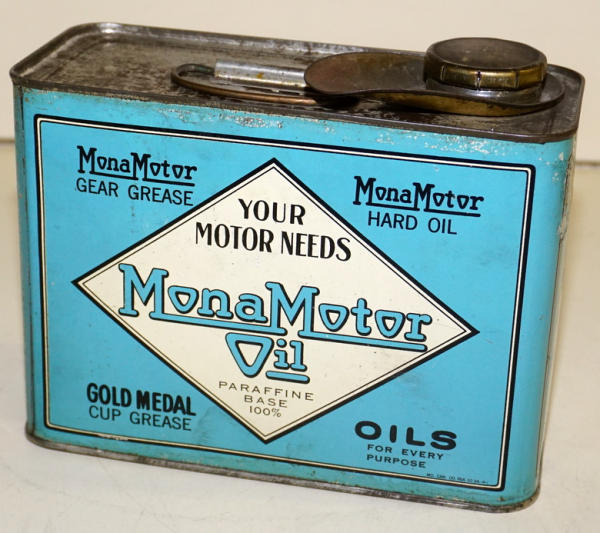 rated 7.75, the half gallon flat metal can has good color and shine, has light wear and a few fine scratches, is empty