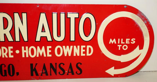 rated 7.5, 11.5"x35", SST embossed sign has good color and shine, has crease at the left edge