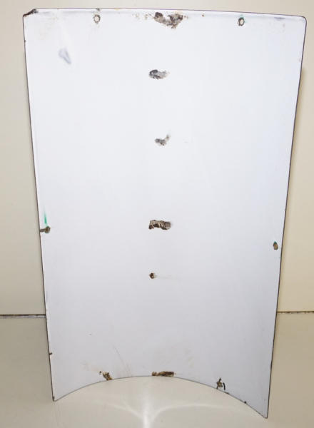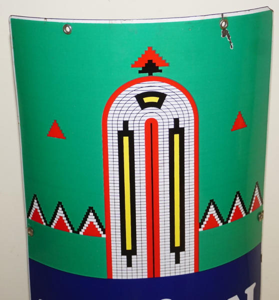 rated 8.25, 18"x12", SSP curved sign has good color and gloss, has chips around the perimeter