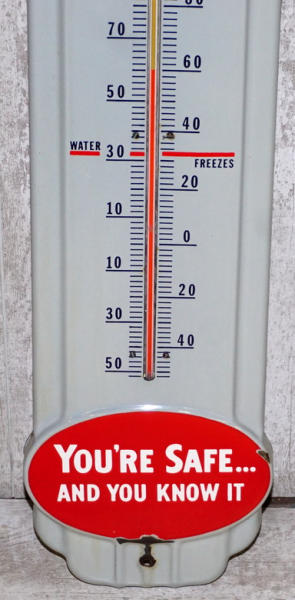 rated 8.5, 36"x9", porcelain thermometer has excellent color and gloss, tube is good,
