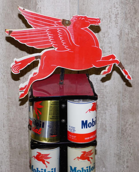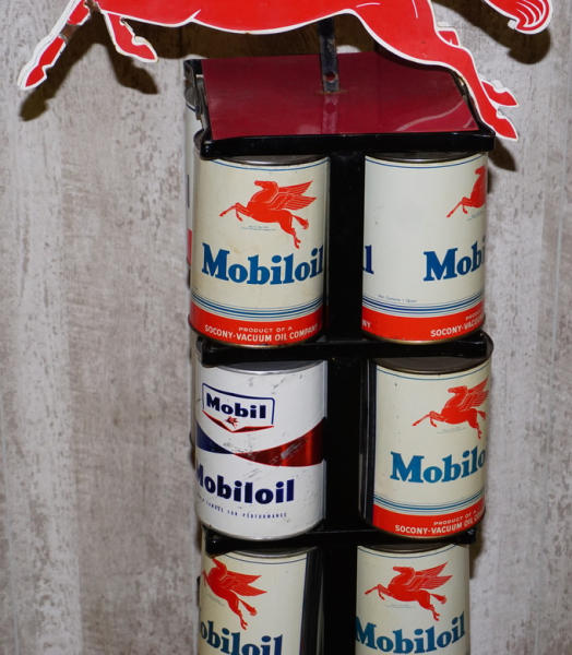 old rack repainted, 48"T., comes with 18 original cans (will hold 20), signs are new