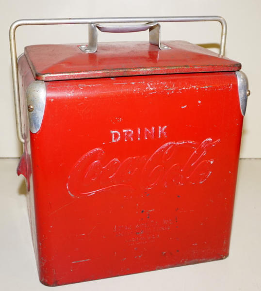 rated 7, 13"x12"x9", metal cooler has wear and scratch's