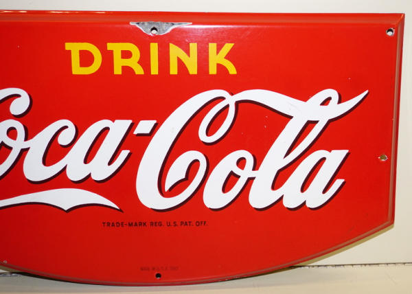 rated 8.75, 15"x25", SSP embossed sign has good color and gloss, has chip at the top, dated 1942