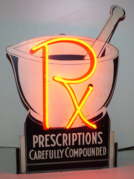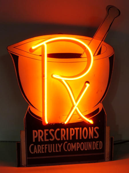 rated, 8, 27"x17"x4", SST die cut sign with neon; sign has good color has light wear and soiling mounted on metal can, works