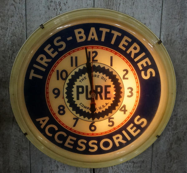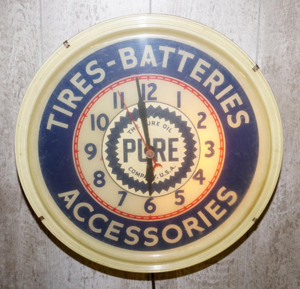 rated 7.5, 16"D., works, originally an Atlas clock with a PURE decal added, looks like it was done a long time ago