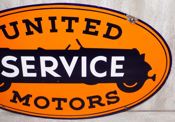 rated 8.5, 28.5"x48", DSP oval sign has excellent color and gloss, has some chips in the field, marked Walker & Co.