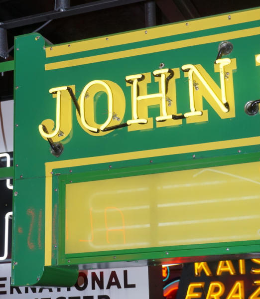 rated 8.5, 37"x76"; 2-SSP neon signs; one side is very nice, has a few small touched up chips on sign and bull nose, mounted on original metal can that is repainted; one side has been completely restored; crated
