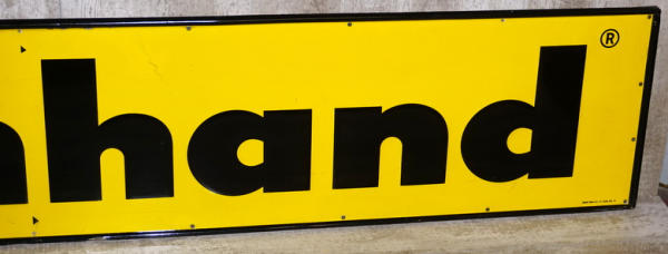 Rated 9, 18"x96", SST framed sign has excellent color and shine, light wear, new wood back, looks like the black frame has some touch ups