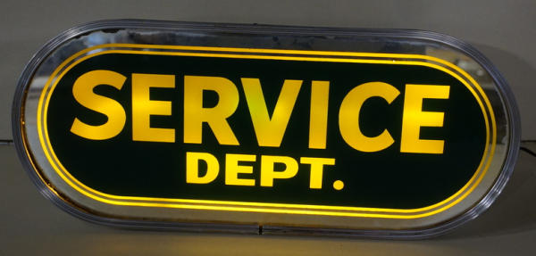 rated 9, 9"x18"x6", the glass and metal lighted sign is in excellent condition, works, very nice