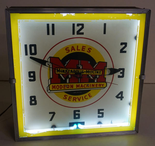 rated 8.5, 15"x15"x4", the clock works, face is good, bezel has minor paint wear.