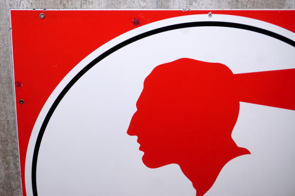 rated 8.9, 36"x36", SSP sign has excellent color and gloss, has two nails at top and left-hand edge.