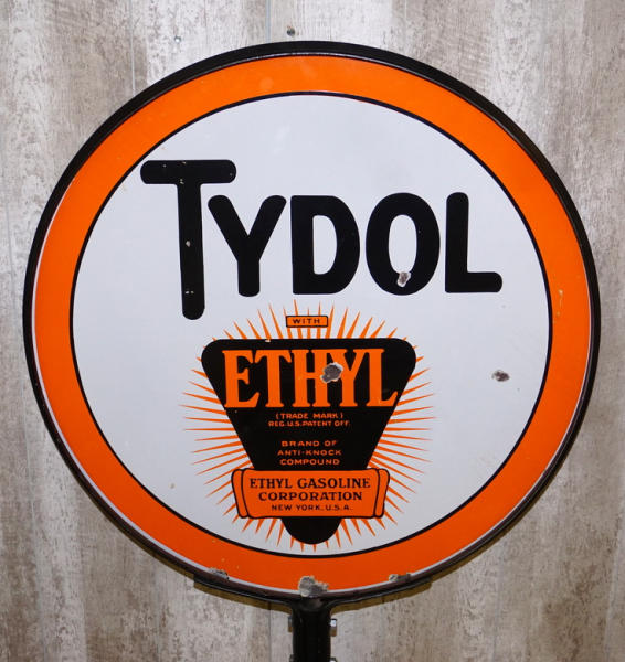 rated 8.5 & 8.25, 30"D., DSP sign has good color and gloss, display has light wear and few chips, reverse has more wear; includes the original ring, no base