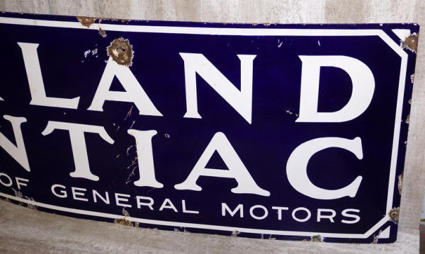 rated 7, 28"x84", SSP sign has good color and gloss, has large chips, wear and scratches