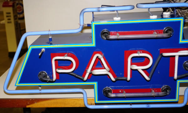 17"x42"x 14", in good condition, works, has been professionally restored, includes before pictures, this sign was fully restored, it started out rough; crated