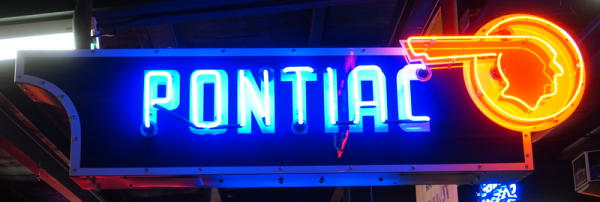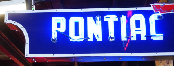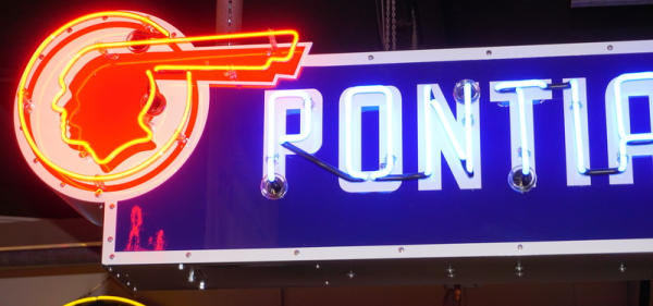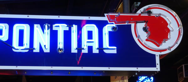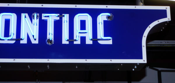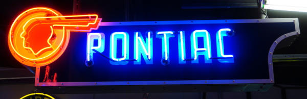 rated 9, 21"x70", 2-SST sign mounted back to back on metal can, this is a new sign that Marv custom made; logo flashes; crated for shipping