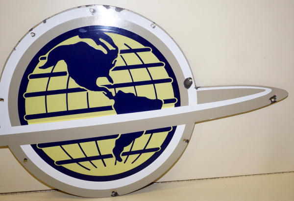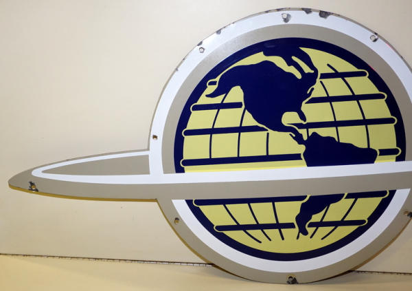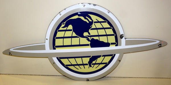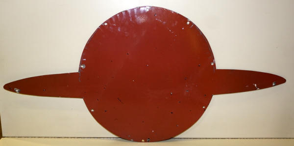 rated 8.5, 20"x41.74", SSP die cut sign has good color and gloss, has chips at the mounting holes, this is off of a larger neon sign