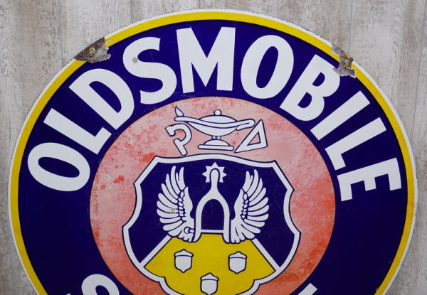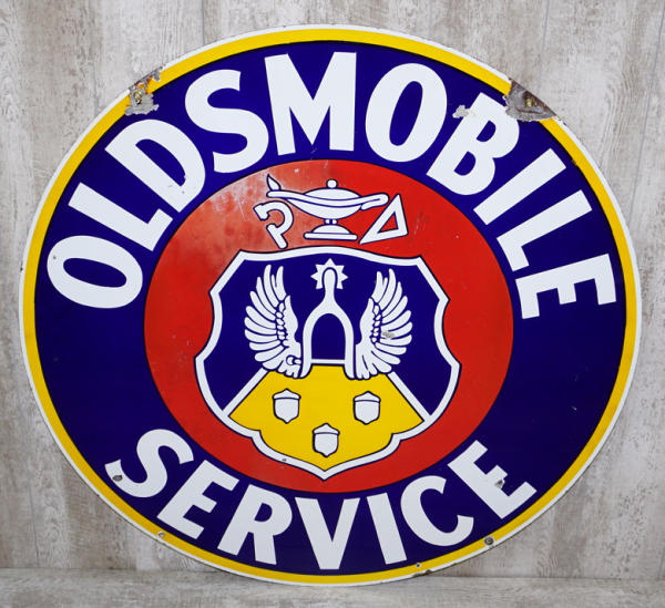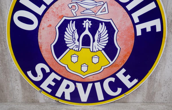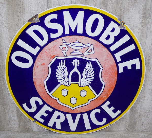 rated 7/ 6.5, 42"D., DSP sign red is faded, blue is good, has small chips, one side has a little better red color than the other