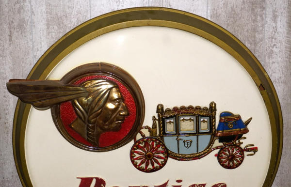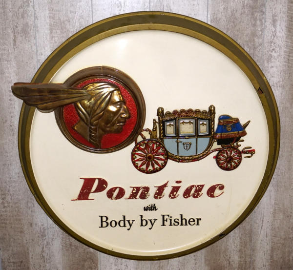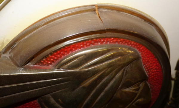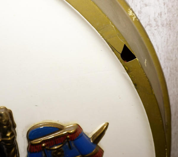 rated 6.5, 33"D., the vacuum form sign has two pieces, has wear and a few spots of damage/holes/cracks