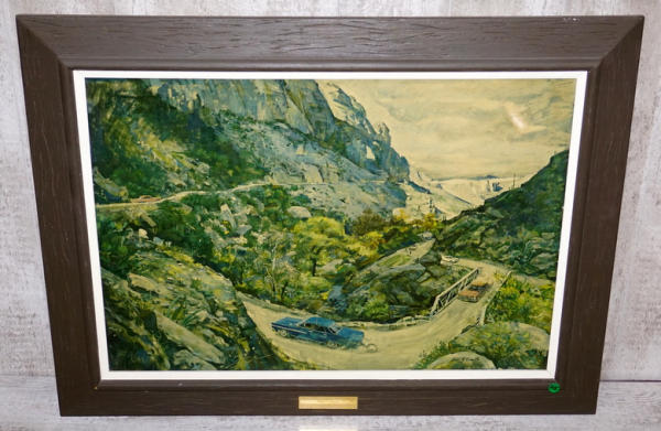 rated 8.5, 29"x38", cardboard center is in good condition, original wood frame and brass plaque, some discoloration from age and a spot on the top right corner