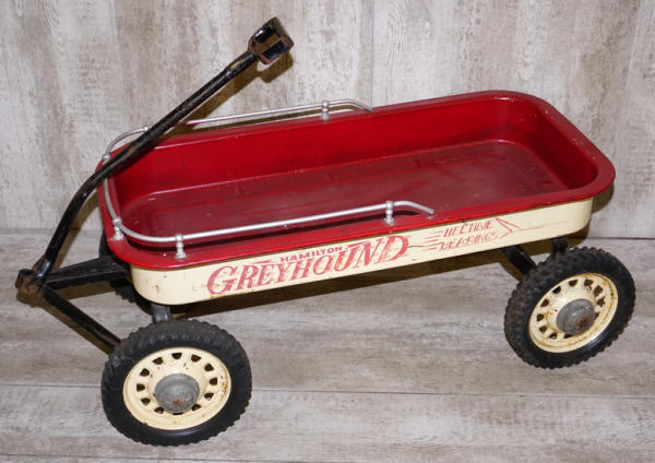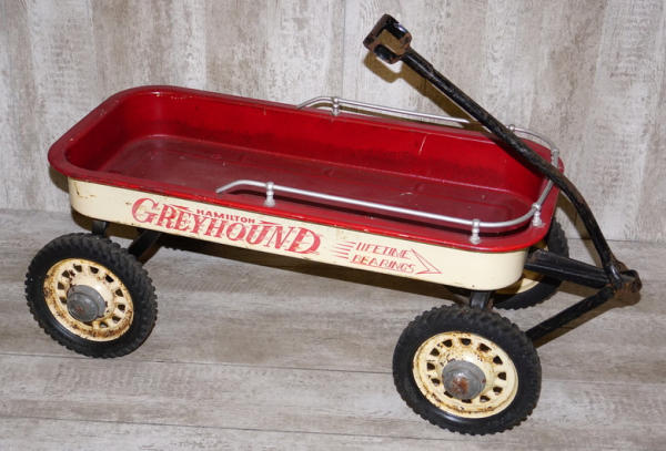 about 40" long, Red inside has been repainted, rest looks to be original, fancy old wagon