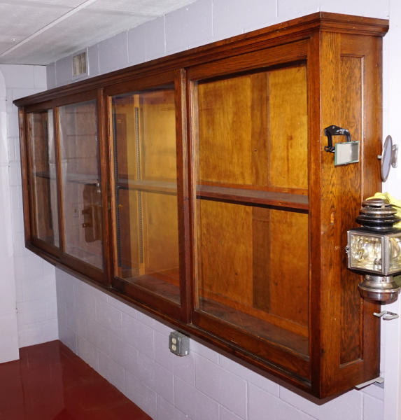 13" deep, 48" tall, front load, Marv used this to display part of his neon clock collection; pickup in Worthington, MN only