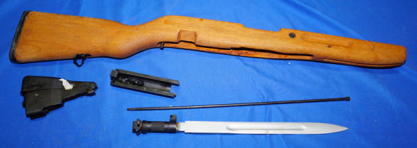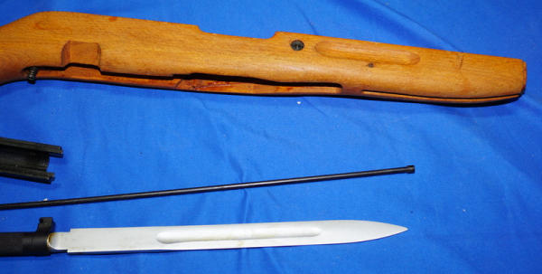 all military, not sure what it fits; wood is nice; blade looks new; sells for one money; no FFL transfer needed