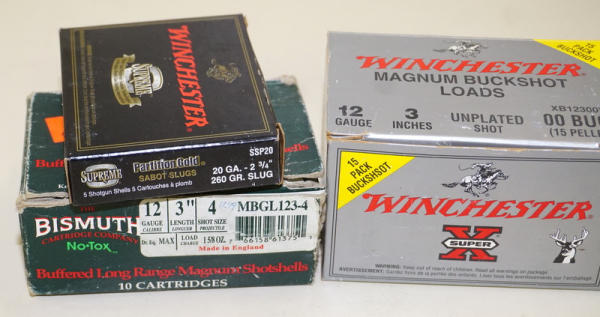 includes 5-Rds Bismuth 4-shot, 13-Rds Win. 00-Buck; & 12-Rds 20ga. Slugs; sell for one money