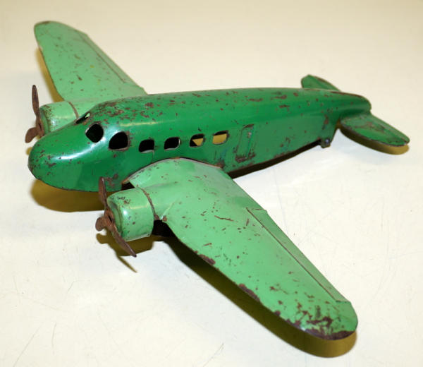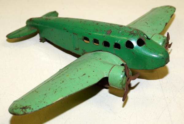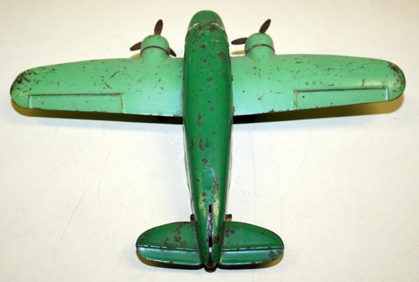 13" wingspan, 9" long, missing tail fin, paint is about 75%