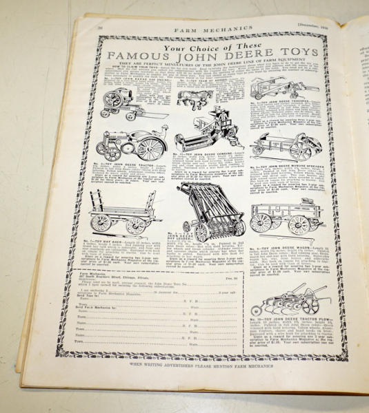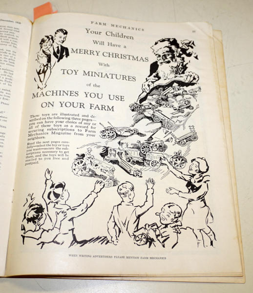 52 pages, has damage to the cover, 4-pages of ads inside showing the Vindex & Arcade toys--IH, JD & Case