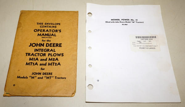 Plow manual is sealed in the original envelope, other is later reprint, both to go
