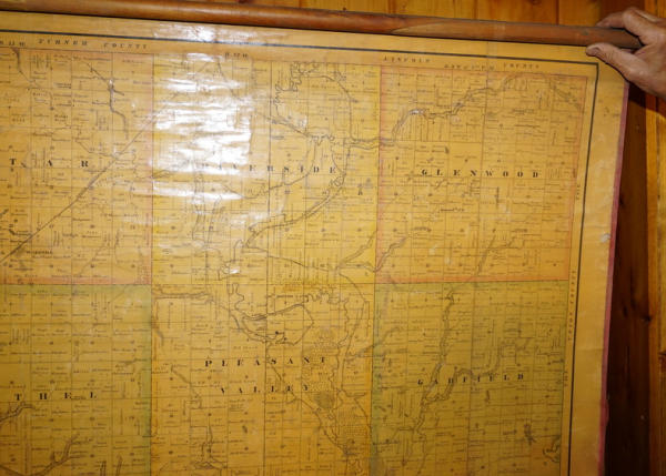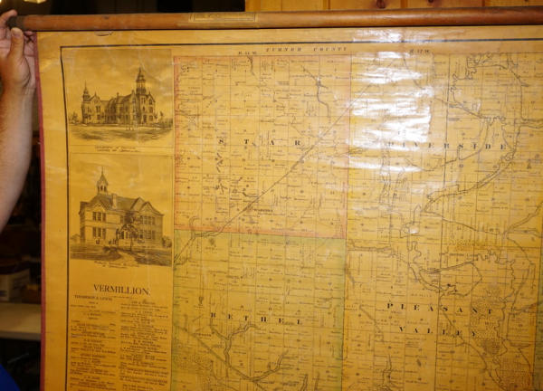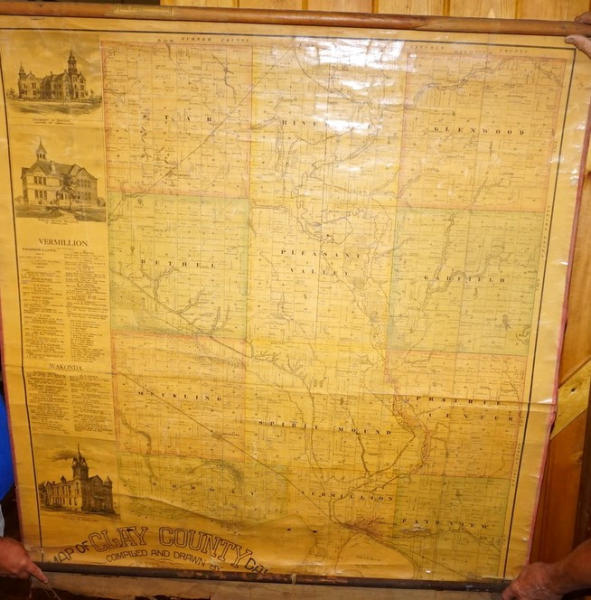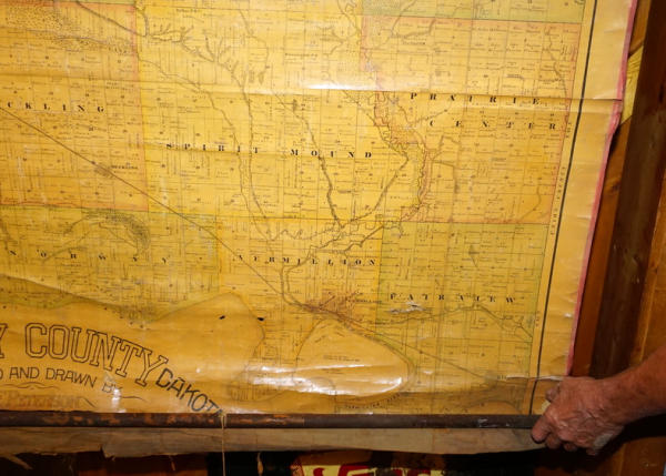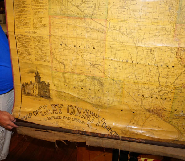 bottom few inches have a lot of damage, some is good, just says "DAKOTA", so this was before SD state hood, has a copyright date of 1884 on the mounting rod