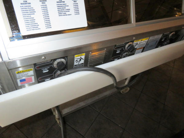 great condition; like new; folding cutting board on front; rear sliding door; 40"x44"x30"; this came out of the Fox Stop gas station; rolling cart underneath does not go with it