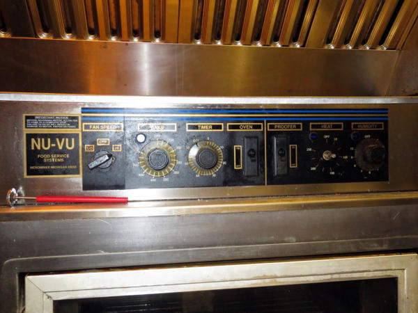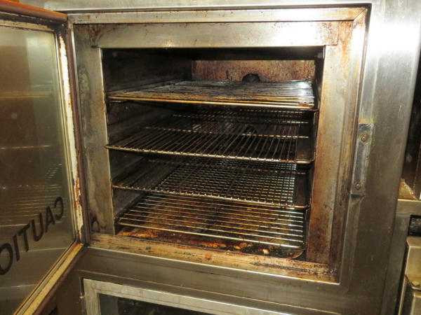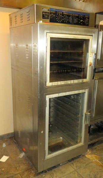 top is circulating air oven; bottom is bread proofer; could use a cleaning; missing one knob on the controls; works; 30"x72"x36"