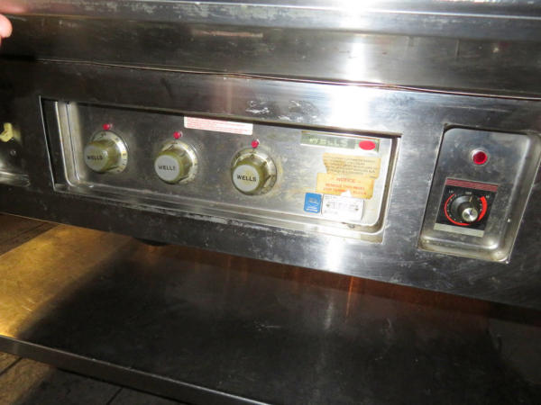 double sided serving; 3-compartment; stainless steel; nice condition; work; 60"x48"x60"; glass sneeze guards