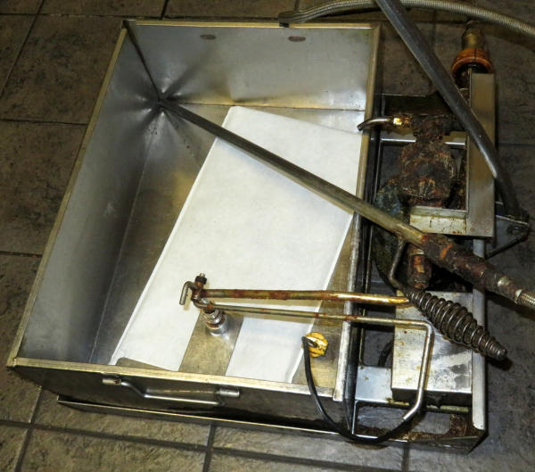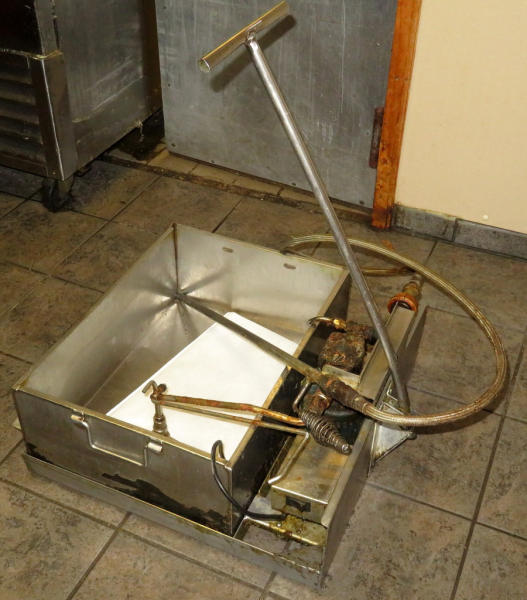 works good; stainless steel oil reservoir is 18"x24"x9"