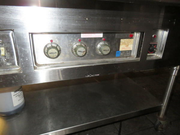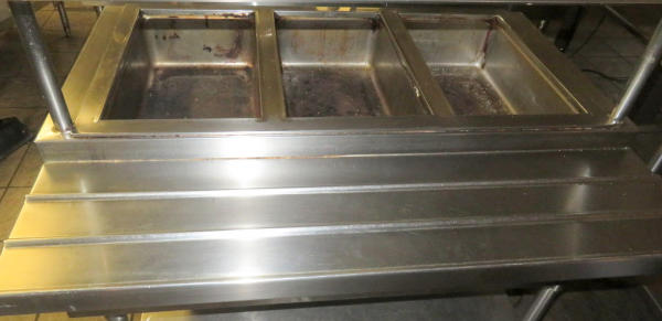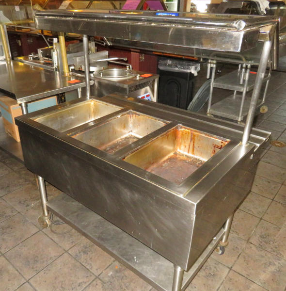 36"x48"x59"; glass sneeze guard; 3-compartments; works; single sided serving