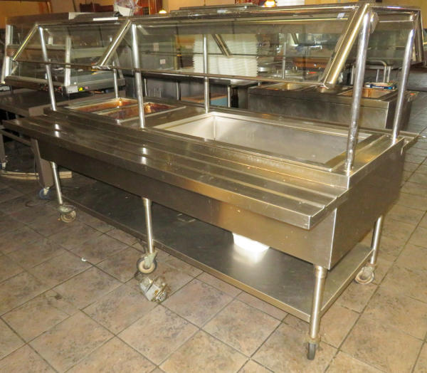 has 2-hot compartments & one large cold compartment; 50"x90"x60"; double sided serving