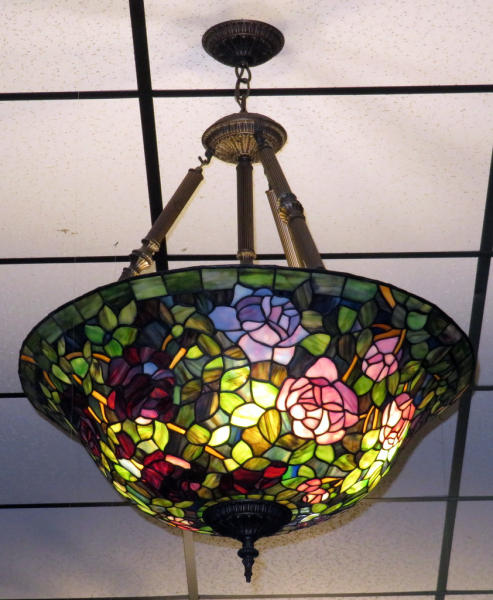 modern made; approx. 2' in dia. Or more; buyer gets to the ceiling and is responsible for removal; the next lights are all alike except the last one is bigger; these all hang in the banquet room