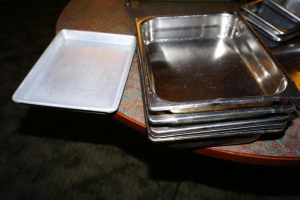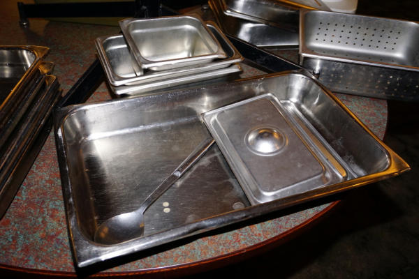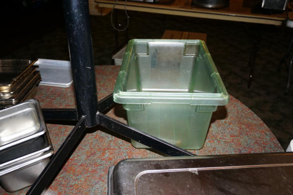 several different sizes, includes plastic tub and one serving spoon, all to go